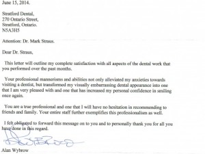 Recently a happy patient wrote a letter expressing his satisfaction with his experience and results at our office. Please read the letter attached.