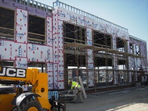 The lighter colour brick is starting to be laid on the North side. The contrast of stone and brick will look sharp when complete.