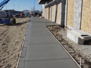 The main sidewalk at the entrance of the building was poured Tuesday. Curbs were poured Wednesday.