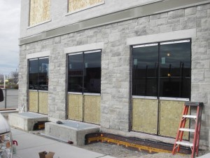The new spandrel glass has arrived and is being installed. The North facing aspect of the building looks very, very sharp.