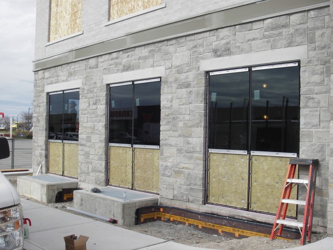 Windows look great! Stratford Dental suite dry wall has started also. As well, the parking lot has been resurfaced with asphalt. A smooth layer of asphalt will occur in the Spring.