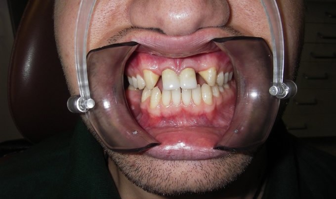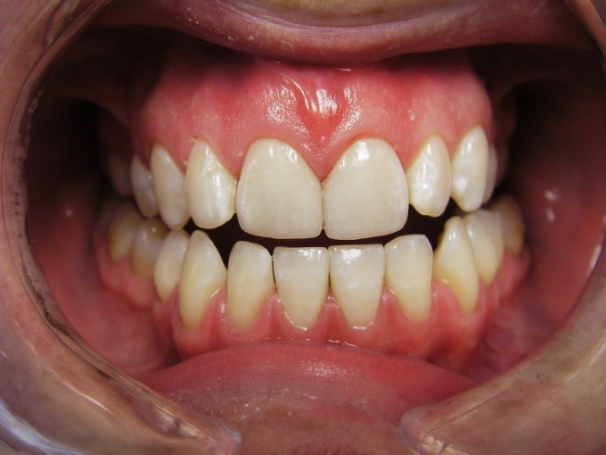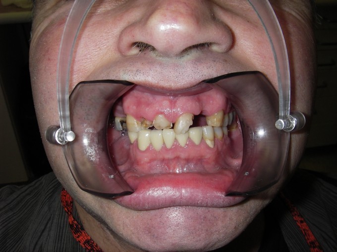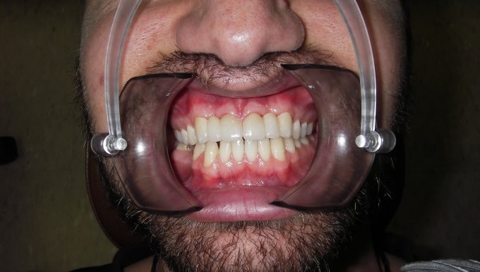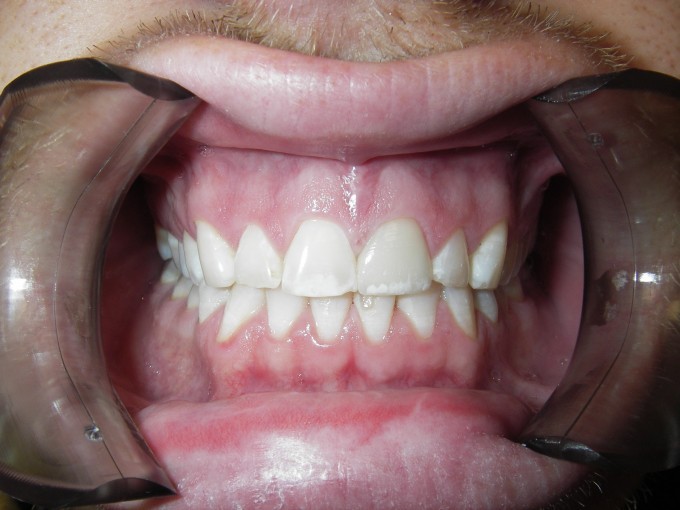 Calculus covers this patients teeth. They had not seen a dentist in greater than 15 years. After a couple of scaling appointments the teeth and gums tissue are in a much healthier state.
